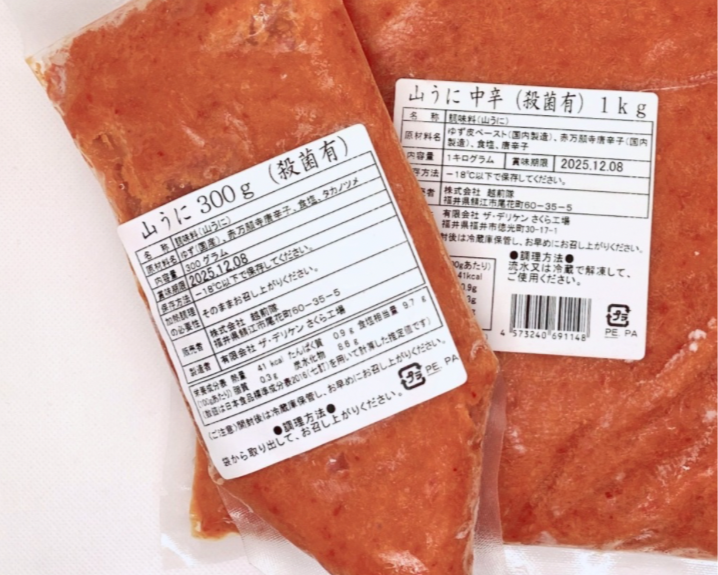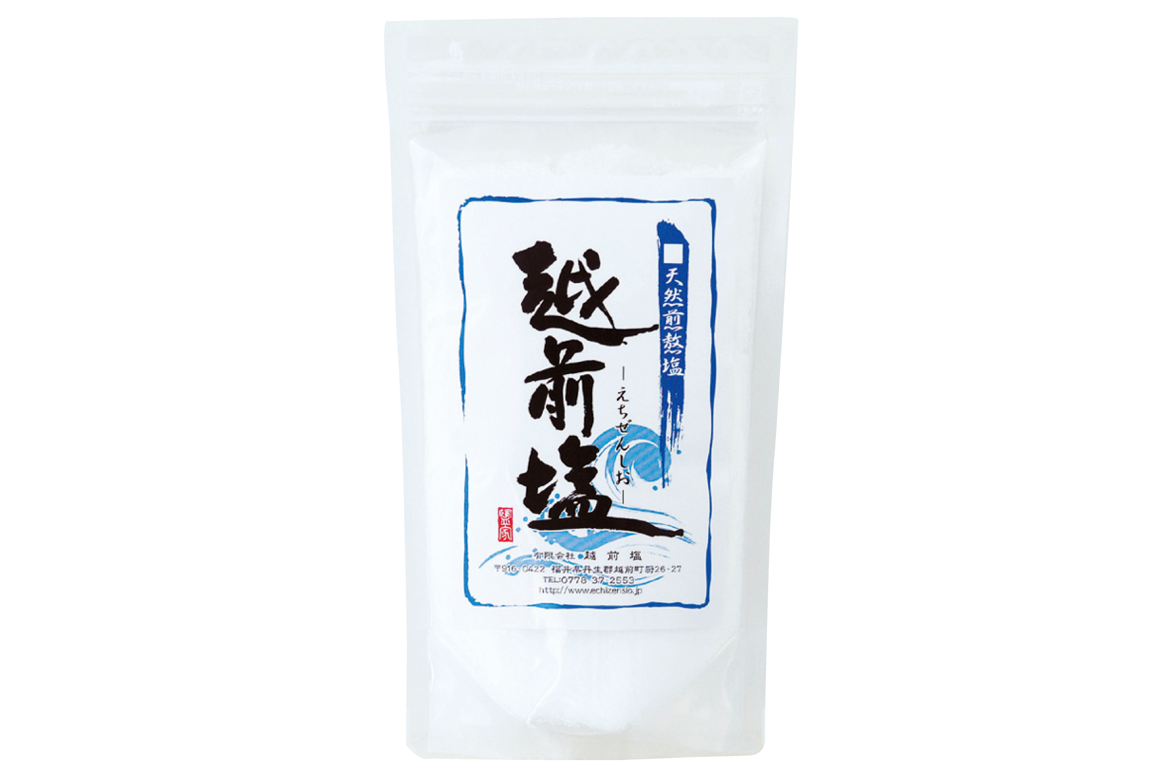 越前海岸の澄み切った海水が原材料の純国産自然海塩を使用。甘みと柔らかい口あたりが山うにを仕上げてくれています。